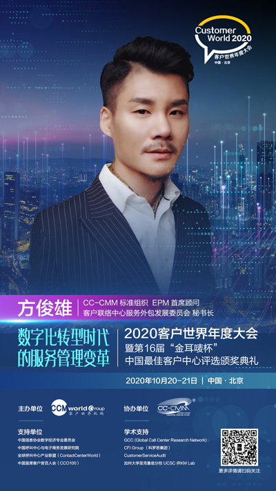 方先生擅长结合企业的行业业务特性和战略目标,科学地设计客服中心组织和制定运营管理策略,有效地实施运营数字化、智能化及客户交互精细化管理。累积了丰富经营规划、管理体系治理、运营中心基建、全面质量管理、人力资源管理和智能技术应用的运营实战经验,著有《金融科技之智能客服》。在2016年第十二届“金耳唛杯”中国最佳客户中心评选中,带领宜信公司获得唯一的总决赛大奖。