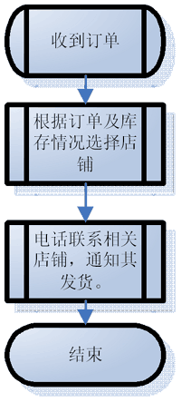 如图,当物流调配组收到订单之后,他们将根据订单中的商品要求找出所有含有该商品库存的便利店,并匹配客户的地址最终确定发货的店铺。之后,物流调配组的工作人员将直接电话联系该店铺的店长,告知具体送货地点和收货人。最后由具体的便利店派店员送货。这里,我们需要注意,当分配了发货的便利店之后,这张订单并没有结束。最终订单结束是要等便利店的工作人员将货物送达用户手上才算结束。