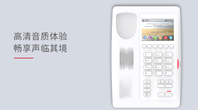方位H5酒店话机专为酒店行业定制,集高颜值与硬实力于一体。它外观精致、时尚,拥有优雅白和沉稳黑两种颜色,可搭配多种不同装修风格;在音质方面,拥有HD超高清音质,为用户提供“声”临其境的体验;另外人体工程学的设计,使音质优质的同时手感同样出众。