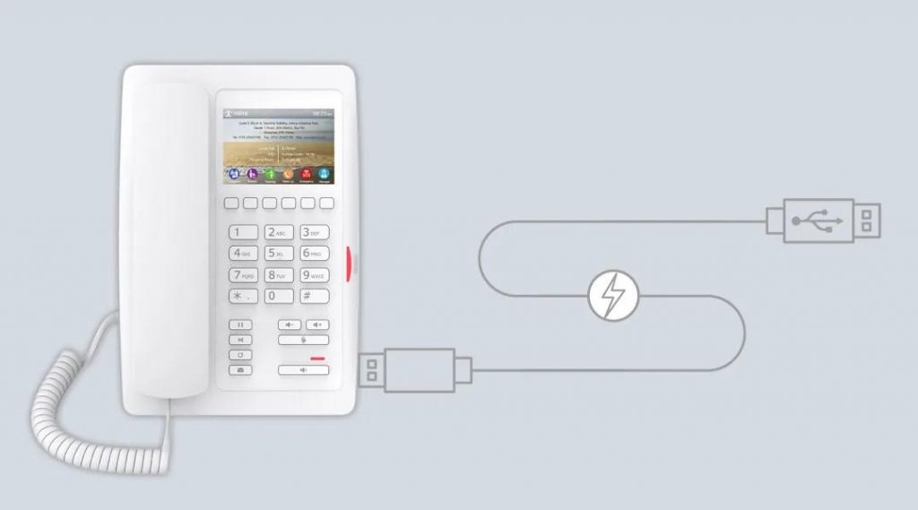 事实上,方位H5酒店话机除了提供优质的通话服务外,更是一个贴心小助手:内置USB接口,可实现手机、平板电脑的便捷充电,出国无需携带充电转换器。