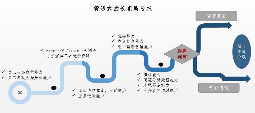 如果把团队成长路径拿来分解(WBS),笔者认为应有如下四大维度,一是满足作业技能要求,二是适合员工管道式素质成长,三是匹配中心业务规模结构发展,四是提升团队凝聚力。