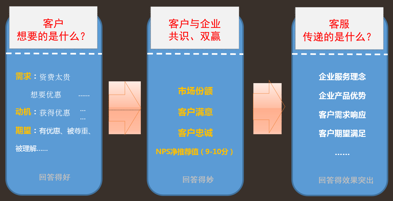 第二、目标要清晰!每一次客户服务,都是为了客户满意与客户忠诚,并转换成市场份额。