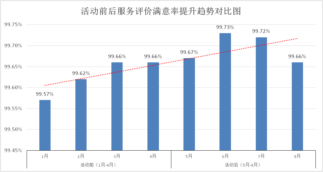 本项持续改善活动初见成效,提升客户满意度的同时,在流程规范优化、服务技巧提炼、知识内容完善、系统功能建设等多方面制定了改善措施,完善了相关机制,获得了一系列的典型经验。通过整合资源、分工协作,形成了一体化协同改善工作思路。下一步,我们将进一步深化持续改善机制在全面质量管理中的应用,促进服务水平稳步提升。