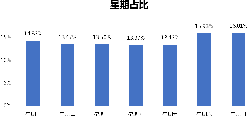 对于日度话量和时段话量的短期预测,通常采取星期占比与时段占比的方式开展。星期占比即收集历史星期一至星期日每天的话量数据,并计算每天话量占全周比例。未来在进行预测时只需要预测到周度话量后,即可通过星期占比,预测出每天的话量数据(图2)。