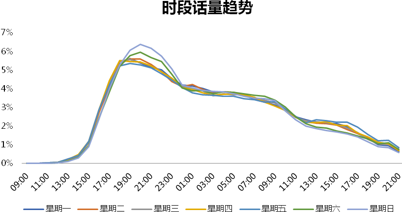 时段占比的规则与星期占比一致,同样是收集历史每天时段话量数据,并计算每个时段话量占全天比例。短期预测时,可以把通过星期占比预测出的日话量与时段占比结合,预测出时段话量数据(图3)。