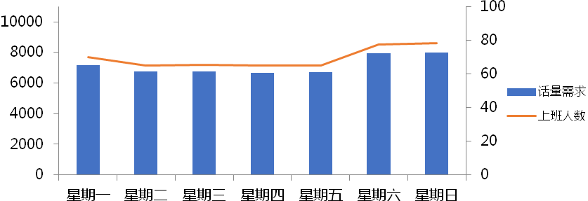 这种匹配关系不仅仅是刚才提及的日度层面上,在时段层面上同样需要。但实际情况下,话量并不会按照我们想象的那样发生,话量一定会在日度、时段上有起伏,有高峰与低谷,有淡季有旺季,此时就需要我们通过其他方式,无论是提前的预测还是精细的排班,来保障我们起伏的话量与员工能力之间仍然可以达成平衡。