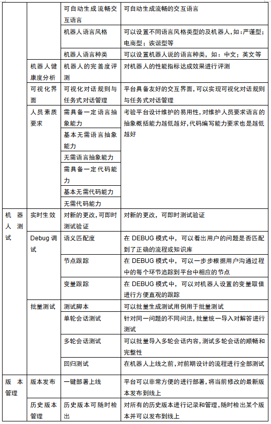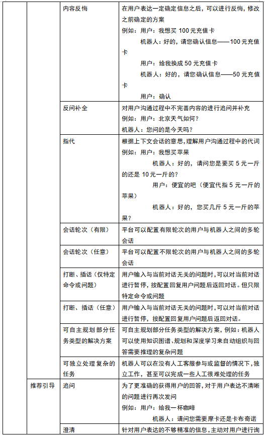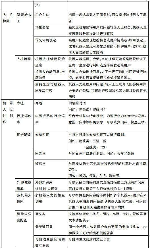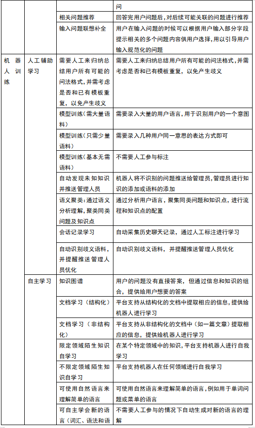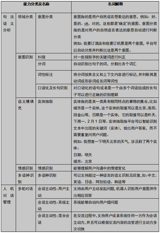 如下表(表一)所示,总结了从较低级别升级到较高级别所需的技术突破。有一点需要注意,与较高级别对应的技术,也可应用于较低级别的智能在线客服,使之表现更加出色。表一中的一些名词在表二中有名词解释。