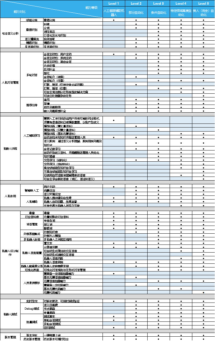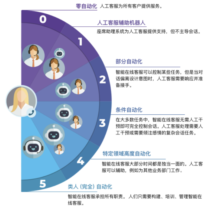 Level 0至Level 5是根据智能在线客服的相对自动化程度定义的。