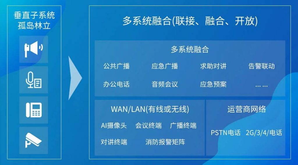 数字化转型浪潮之下,公共广播多系统融合的趋势也日益明显。互联互通的公共广播系统不仅能提高办公及生产效率,还可以极大地降低实际运营成本。