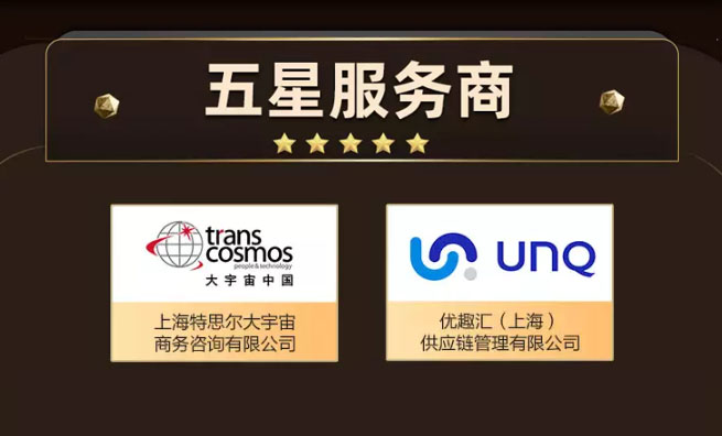 目前,天猫平台针对天猫和天猫国际的所有代运营服务商每半年进行一次星级评定,旨在评选出综合实力最优的服务商资源。2020年,随着天猫平台和各项服务的升级,天猫也对服务商提出了更高的要求,经过“店铺运营能力”、“品牌营销能力”、“消费者运营能力”、“渠道运营能力”、“服务运营能力”五项评价得出服务商能力分值,最终决定出服务商排名。凭借优质的运营服务能力和整合营销方案,继2020年上半年荣获天猫“五星服务商”评定后,transcosmos China再次荣登“五星服务商”排行榜。这也是自2016开始,公司连续五年蝉联“天猫五星服务商”。