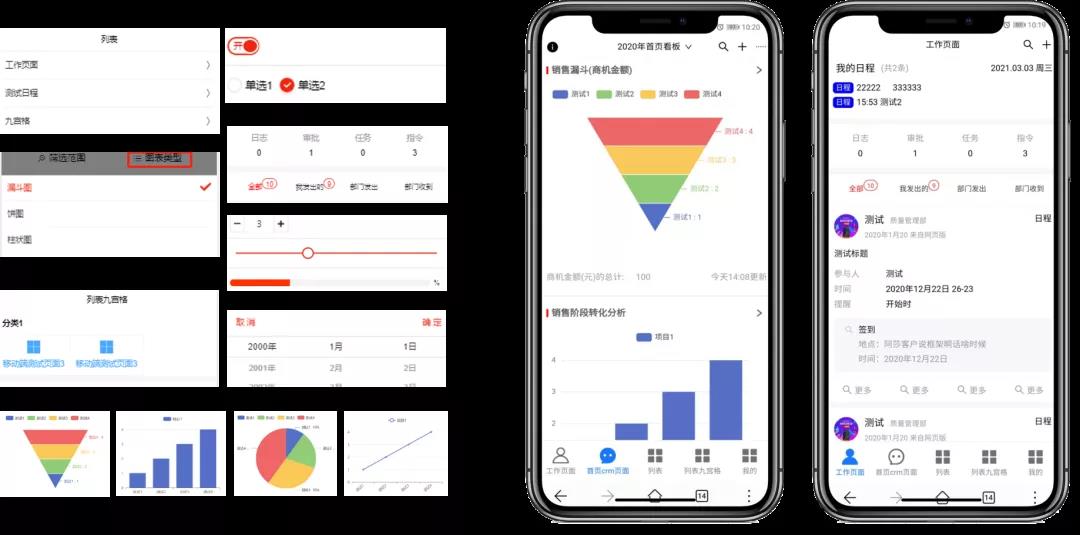 U-Agent平台提供了通用组件、图表组件、导航、表单等一站式全系列的组件库,各种类型的组件都可以放到一个页面,所见即所得,呈现效果更加丰富。丰富的组件给应用的交互呈现带来了极大的适应度。更重要的是,所有组件内置都已支持PC端和移动端,且自动适配,还可进行简单脚本,能够很大程度满足客户的应用定制化需求。