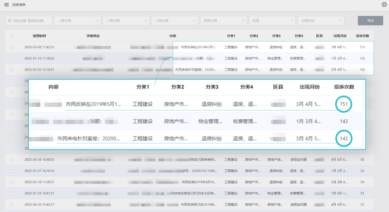 既然要通过数据支撑城市治理工作的宏观决策和靶向治理,那么工单数据归类的准确性、分析要素的精细程度、分析结果的展现和应用等方面的工作都尤为重要,缺一不可。