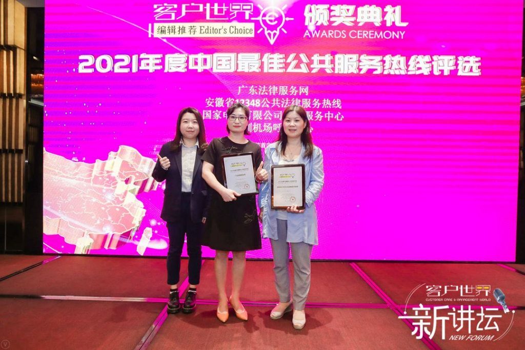 广东法律服务网荣获《客户世界》编辑推荐:2021年度中国最佳公共服务热线奖