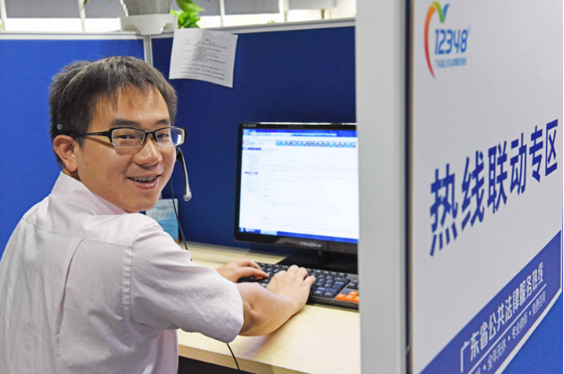 广东法律服务网运营中心是广东法律服务网的核心,负责全省法律服务的资源调配和服务监管等,为全省群众提供语音和视频等线上服务。语音平台建设有专门的呼叫中心,占地面积超过2400平方米,设有坐席197个,提供“7×24”小时全年无休的专业化法律服务,并有普通话、粤语、客家话、潮汕话四种语言可供群众选择,服务人员为具有三年以上执业经历的专业律师和具有丰富实践经验的司法行政业务人员。自2015年12月8日至今累计为群众提供服务567.5万人次,接通率95.59%,群众满意度在99%以上。受理公共法律服务事项工单35270宗,办结率96.93%。