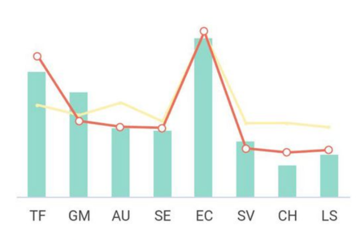 至此,通过职业锚评测,我们可以大致知道自己的职业倾向是怎样的了。接下来,就是要将测评结果予以应用了。职业锚的应用可以用在选人上,也可以用在育人中。但无论是用在那一块,都需要先积累对比数据。我们的做法是:首先,组织已在职的各岗位优秀员工完成职业锚测评;然后,基于他们的测评结果,画出共性的岗位职业倾向线性图;最后,以这个共性的图作为今后比对的基准(图2)。