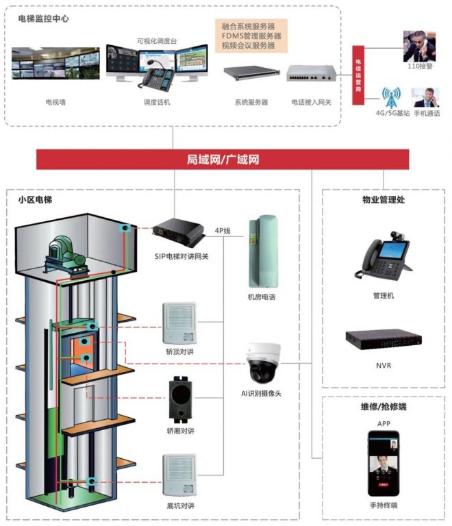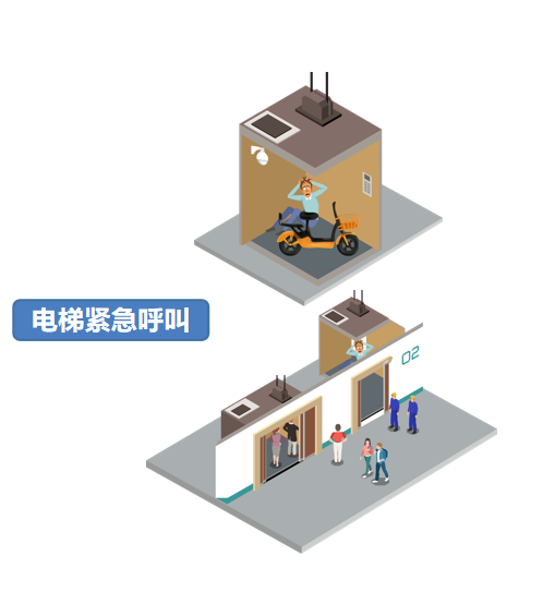 痛点一:传统电梯内置的紧急呼叫对讲系统,主要为厂商出厂时预装。其以模拟技术为主,需单独布线、部署及维护成本高,只能进行短距离局域网组网呼叫本地值班室。