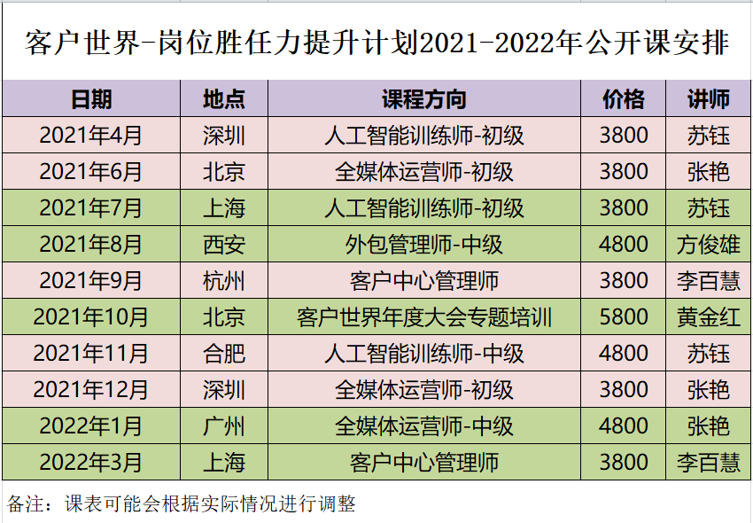 - 2022客户世界“核心岗位胜任力提升”公开课程计划