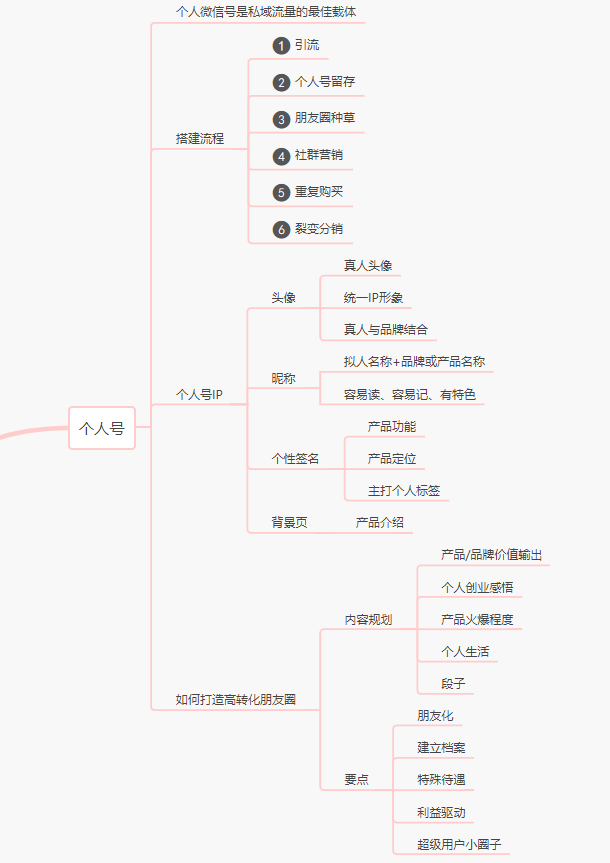 个人微信号是私域流量的最佳载体,可以构建无数个超级用户圈子。以下是行业内个人号运营框架思路,目前考拉社群运营团队正在逐步完善以系列个人号为代表的私域流量运营,比如切入的宝妈群、城市群、潮鞋群等。
