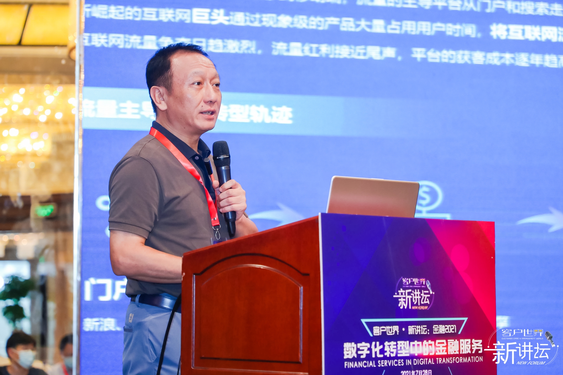 2021年7月28日,上海。客户世界消息:客户世界 • 新讲坛:金融2021今日在上海-中油阳光大酒店成功举行。本次活动由客户世界机构、CC-CMM国际标准组织主办,中国信息协会数字经济专业委员会、中国呼叫中心与电子商务发展研究院、全球客户中心产业联盟ContactCenterWorld、CCO100首席客户官百人会、上海市呼叫中心协会等提供会议支持。本次会议全程采用:现场演讲+嘉宾互动+全网直播的方式进行立体化呈现,在台风侵袭、疫情蔓延、严格监管影响下,本次会议举办是个很大的挑战,但仍有超过200名行业同仁莅临会议现场参会,会议现场交流踴跃,且在线观众人数突破15万人次!