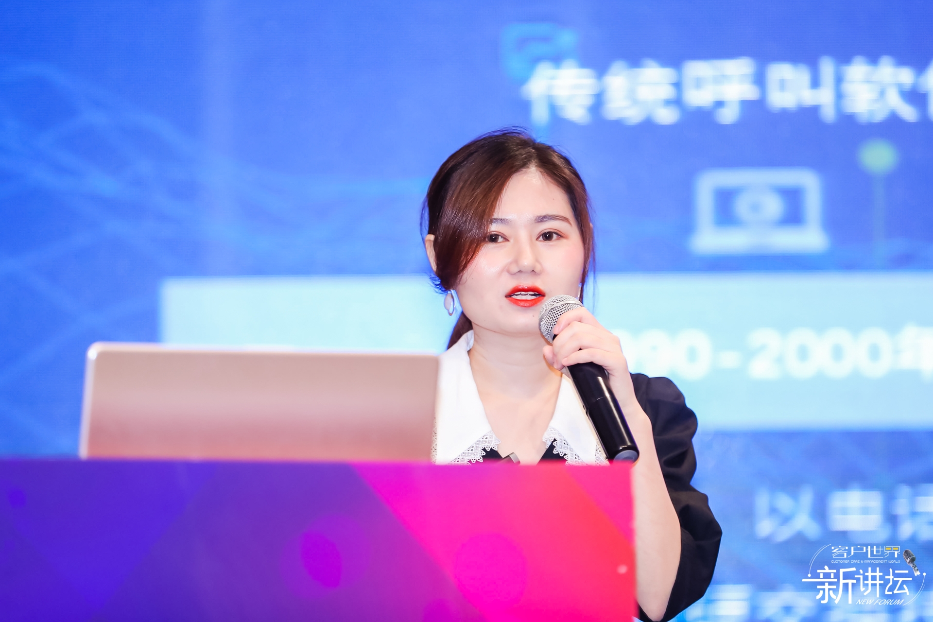 论坛现场设置了前沿技术及应用创新展示交流区域,远传、竹间、泰盈、NICE、Genesys、华云天下等参展单位在现场展示了各自的最新成果。