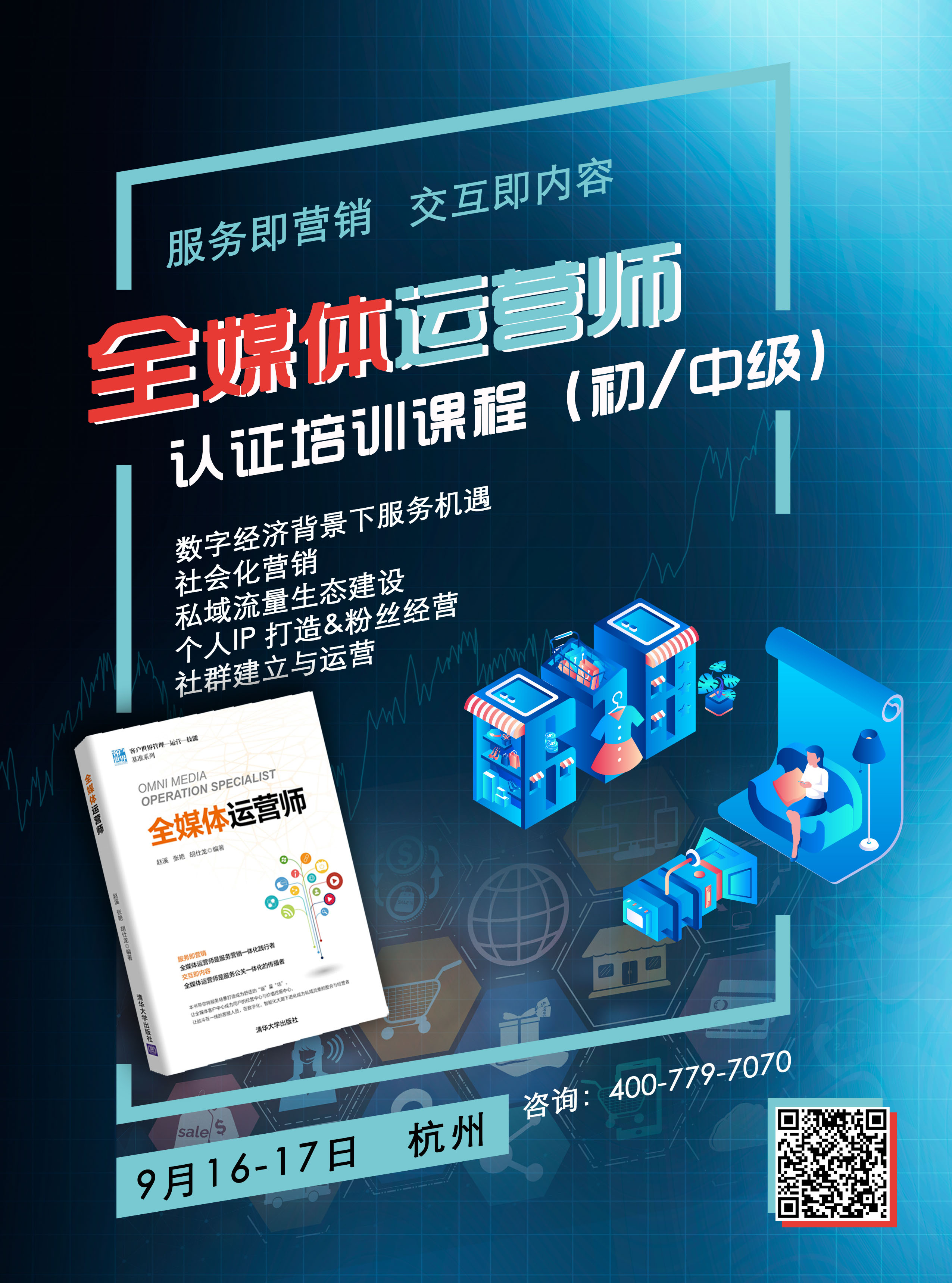 《全媒体运营师-初/中级》认证培训-第二期(杭州/9月16-17日)