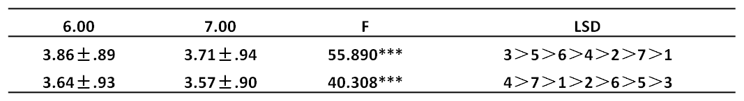 注:*代表p<0.05,**代表p<0.01,***代表p<0.001。1代表20~30岁,2代表31~40岁,3代表41~50岁,4代表50岁以上。