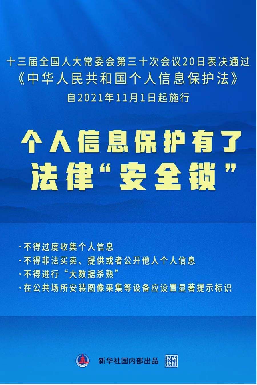 2021年8月20日,客户世界消息:十三届全国人大常委会第三十次会议今日表决通过《中华人民共和国个人信息保护法》。