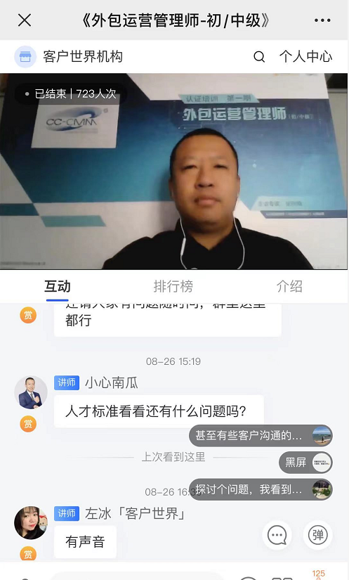 2021年8月27日,客户世界消息:第一期《外包运营管理师–初/中级》认证培训于8月26-27日圆满举行。原定西安举办的《外包运营管理师–初/中级》认证培训课程,因国内疫情反复的原因,转为线上培训。鸿联九五、银雁、深圳电信、PCCW、泰盈科技、百度客户体验中心、上海维音、北京智联万通、赛科斯、歌华有限、远传新业、北京谊友仁康科技、甘肃陇能慧金等数十家知名企业的客户中心相关岗位的管理者参加了此次培训。
