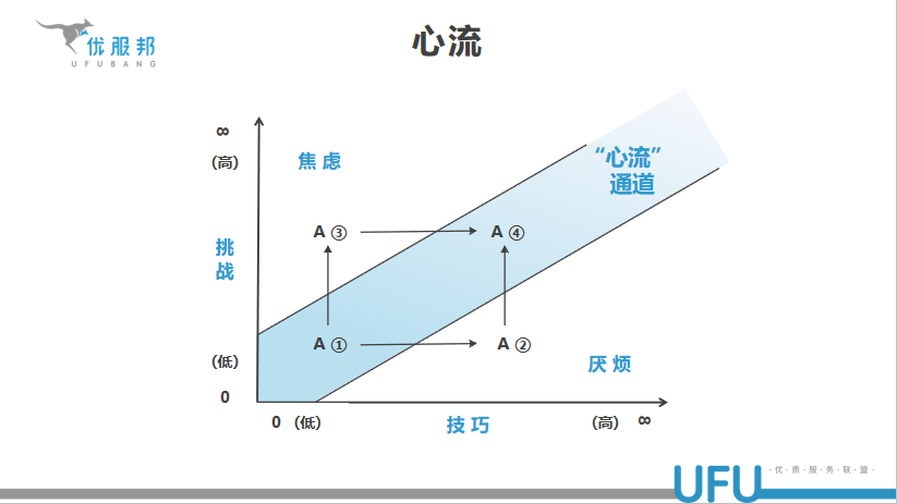 如果挑战水平偏高,技能水平偏中,员工会对这个工作感到“被唤起”,有兴奋、有紧张、但不会感到无聊;