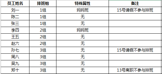 2、1、在拿到人员信息表之后首先要做的就是进行人员筛选,需要区分开计划内缺勤人数、未任命职能岗人数和可参与排班人数(表1)。