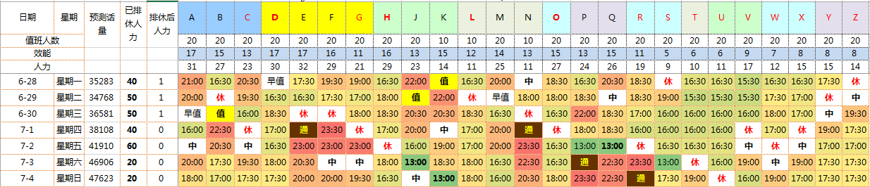 班次制定前,也需要根据时段的需求人力进行拟合,上述也只是班次名称的区间范围,早班也可以分为早1、早2和早3等,具体的就需要根据每天的实际情况进行设定。
