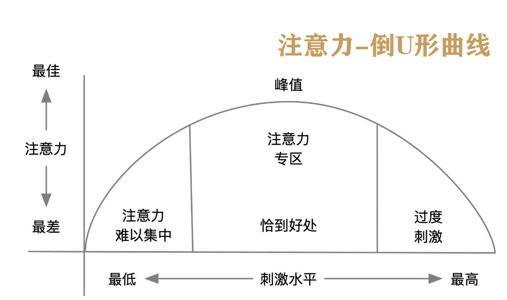 那么哪些情况之下要降低刺激程度?比如说课堂上有一个特别复杂的技能需要掌握,过于紧张焦虑,心神不宁,注意力自然也很难集中。那这时候你怎么办呢?