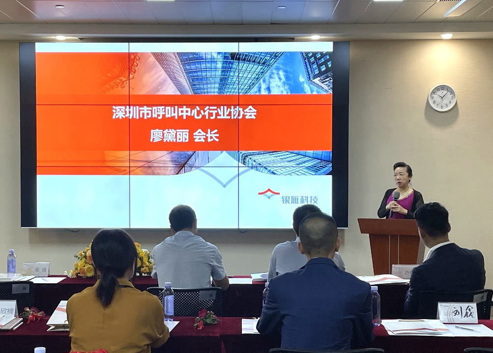 深圳市呼叫中心行业协会廖黛丽会长发言。希望银雁科技充分利用在金融行业的科技服务方面大优势做好金融行业各方面的服务。同时,CC-CMM国际标准认证是体系化梳理和整个业务交互的过程,是内部问题检查、解决和行业标准接轨的过程。最后,廖会长希望银雁科技能够在金融行业这个领域里面做到极致,为行业的发展做出积极的贡献。