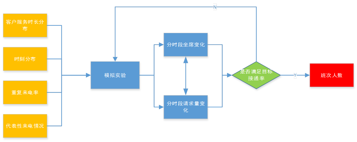 3、估算给定座席安排接通率。业务人员经验排班(控制夜班、保证午休等),预估接通率。
