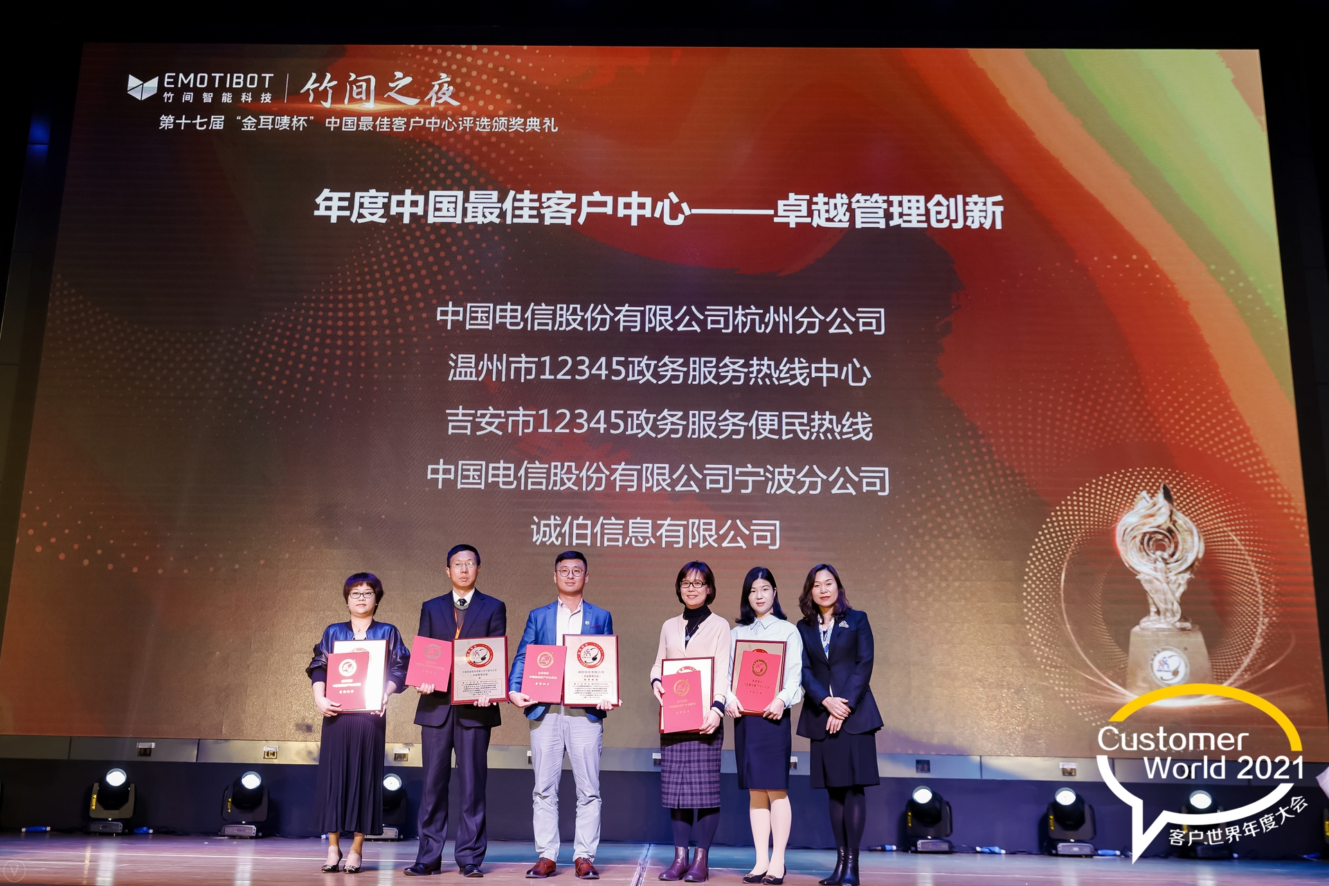 温州市12345政务服务热线中心荣获2021“金耳唛杯”中国最佳客户中心卓越管理创新奖