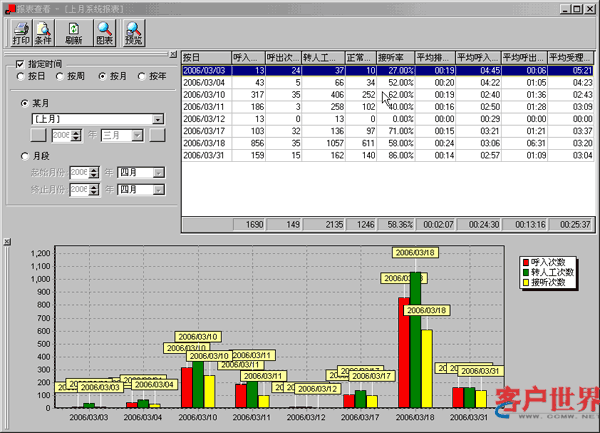 提供丰富的呼叫中心历史运行数据的查询和报表功能。