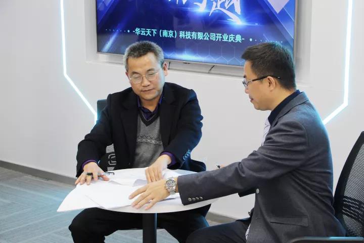 开业庆典现场,华云天下南京总公司迎来了“开门红” ——华云天下(南京)科技有限公司与无锡恰图网络科技有限公司在庆典现场签约了“物流调度员”项目。