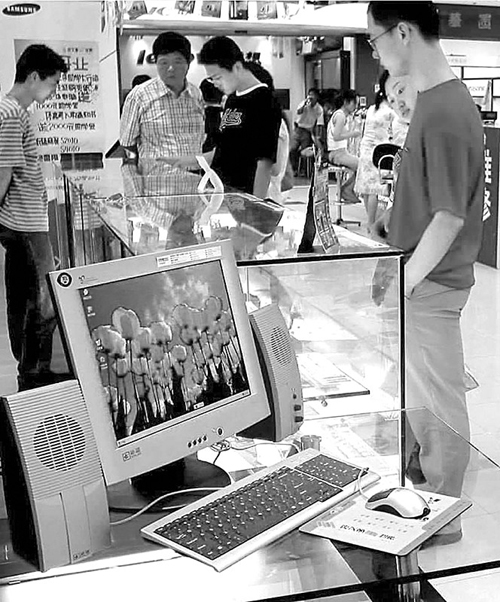 图1:目前,全球信息技术服务外包方兴未艾,市场规模已经超过3000亿美元。图为消费者在电脑市场选购IT产品。 (俞永均供图)