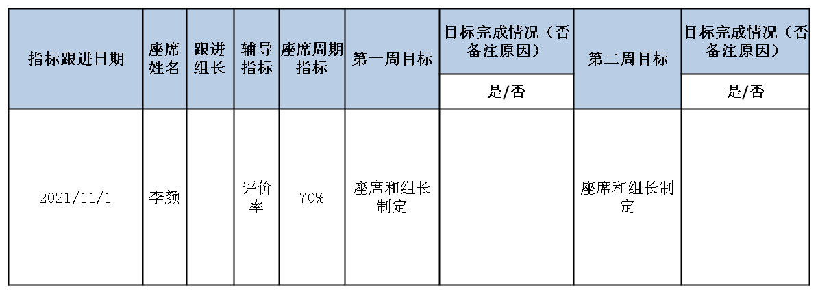 第三步:培训结束后,组长与参培座席共同合理制定指标目标,过程跟进,和结果复盘。(跟进指标建议不少于2周,跟进实际运营指标情况制定。)
