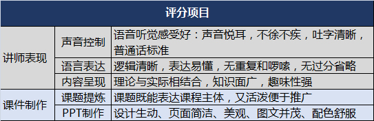 2)比赛形式:决赛入围选手通过抽签决定出场顺序,进入【我是讲师(第四季)】活动,通过自选主题培训课程直播1小时的方式进行。