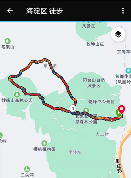 大觉寺-鹫峰古道-萝芭地北尖-阳山顶-三界碑-妙峰山顶-玉皇顶-妙峰山回香阁-涧沟村-妙峰山玫瑰园-鹫峰古道-大觉寺