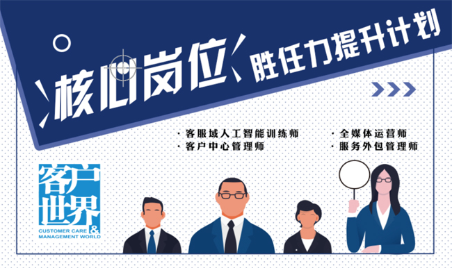 为加快培养大批高素质劳动者和技术技能人才,改善新职业人才供给质量结构,支持战略性新兴产业发展,推动数字经济与实体经济深度融合,近日,国家人社部印发了《关于加强新职业培训工作的通知》。基于《通知》的精神和客户中心行业发展的实际需要,客户世界机构集合行业一批新锐专家组成工作组,经过长时间的专题研究,正式推出以“CCM 客户中心管理师”、“EPM 外包管理师”、“AIT 人工智能训练师”、“OMO 全媒体运营师”为主要核心岗位胜任力提升计划”。