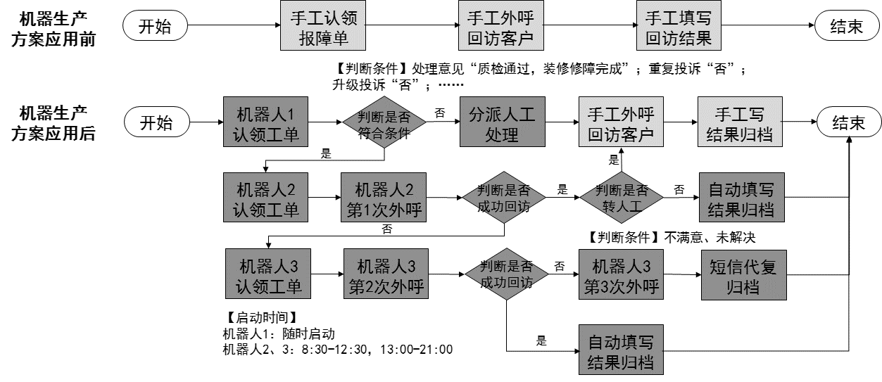 图4 RPA+AI工单回访自动化场景应用前后对比