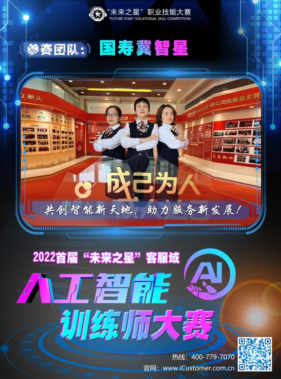团队介绍:该团队成立于2018年5月,所属成员均取得了AI人工智能训练师(初级)认证资格。始终贯彻落实集团公司“一个客户、一个国寿”战略部署,充分发挥人工智能在线服务的能力和价值,从客户实际需求出发,通过持续标注调优训练与服务日志分析,优化自助服务流程,进一步拓展智能服务运营深度,不断的迭代更新,沉淀适用的智能服务解决方案,让客户享受到高质量、高价值、高时效、高科技、高情感的服务,为全系统智能化在线服务推广提供了丰富的经验和奠定了扎实的基础。