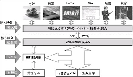 为了实现呼叫中心的分布特性和多媒体特性,我们将体系结构分为四层功能实体: