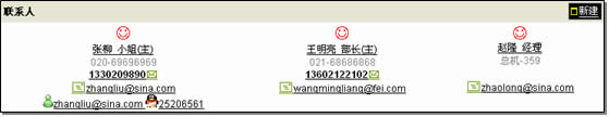 比起Salesforce,XToolsCRM新建联系人的界面友好得多,基本上没有界面的切换,整个过程完全在客户试图内实现,Ajax技术的应用发挥了很好的作用。另外,XToolsCRM联系人的信息显示方式很特殊,一改常见的水平列表、以单元块的方式并列展示,多联系人时视觉效果也很好。