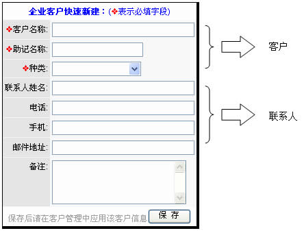 客户名称为必填字段,其它字段均可在保存后逐渐丰富。