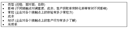• 每个接触点都应有明确的定义并按照以下标题所列内容进行分析:——
