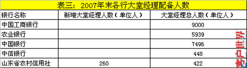 中信银行大堂经理网点配备率从2007年初的65%提高到年末的90%。工行2007年个人客户经理新增5622名,总数已超过2万人,大堂经理则超过9000人。在实施核心竞争力项目的理财中心,理财经理网均配备达到1.12人,营销经理网均1.18人,大堂经理网均1.09人,非现金柜员网均3.70人。中行全行截至2007年12月末配备了3407名专职大堂经理,4089名兼职大堂经理,在全辖10113个网点中,大堂经理的配备率达74%。在代售奥运门票第二阶段过程中,面对奥组委售票系统故障的突发事件,中行大堂经理发挥了积极作用,果断采取了应急措施,平息了网点排队购票客户的情绪,并配合奥组委有效解决了因系统问题给客户造成的不良影响,受到了奥组委和公安等部门的表扬。