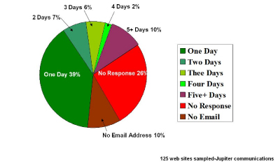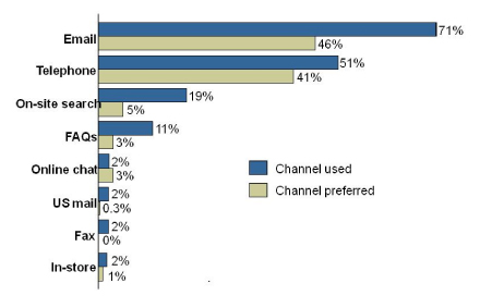 该报告进一步总结到,60%的网站客户希望更多互动但许多电子商务企业无法回应电子邮件且不能提供足够的电话支持。也有很多电子商务企业提供电子邮件支持,比如说etoys,但对于如潮水般汹涌而来的电子邮件联络他们显然没有什么准备以至于处理结果符合客户预期的邮件少之又少。如果处理的好 (借助电子邮件响应管理系统) 电子邮件的确能为客户解决一些非实时的问题但却无法在浏览者/愿景客户购买兴趣最高的时候回答他们的询问,PeopleSupport在其调研中提到这一事实造成的结果就是大量销售机会仅仅因为“个人服务”和“接触方式偏好”而流失。
